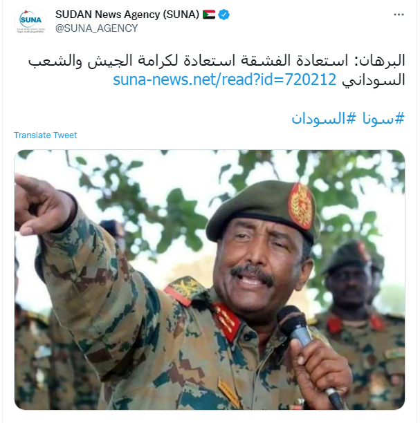 وقال البرهان: "إن السودان ظل يحاور الجانب الاثيوبي لفترة طويلة حول المنطقة ووجد تعنتًا وتماطلًا من الجانب الإثيوبي وكانت ملحمة استرداد الفشقة تأكيدا على قدرة السودان على استرجاع حقوقه وحمايتها".