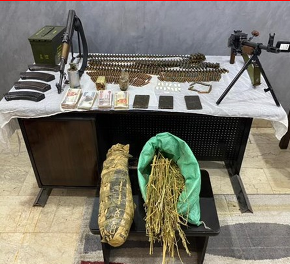 وبتمشيط المنطقة المحيطة بمسكنهما تبين مصرع العنصرين الإجراميين وتم العثور بجوارهما على (رشاش جرينوف - بندقية آلية - صندوق ذخيرة بداخله كمية من الطلقات – 4 خزينة – كمية من المواد المخدرة "بانجو - هيروين – حشيش") وبتفتيش مسكن أحدهما عُثر على مبلغ مالى من حصيلة الإتجار فى المواد المخدرة وتم اتخاذ الإجراءات القانونية وجارٍ العرض على النيابة العامة.