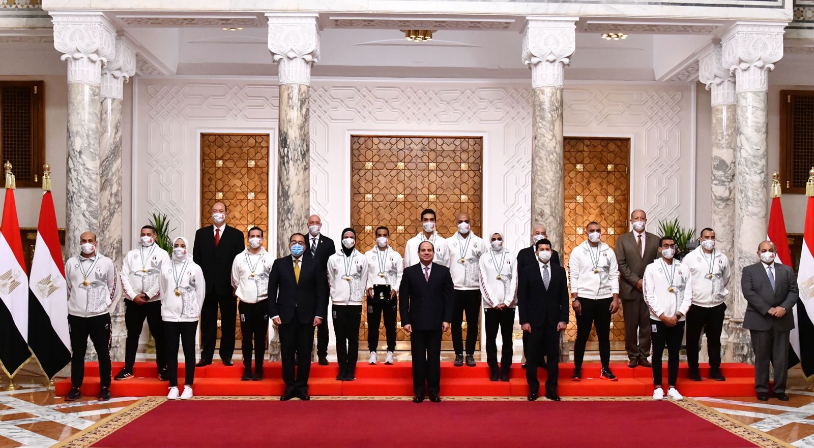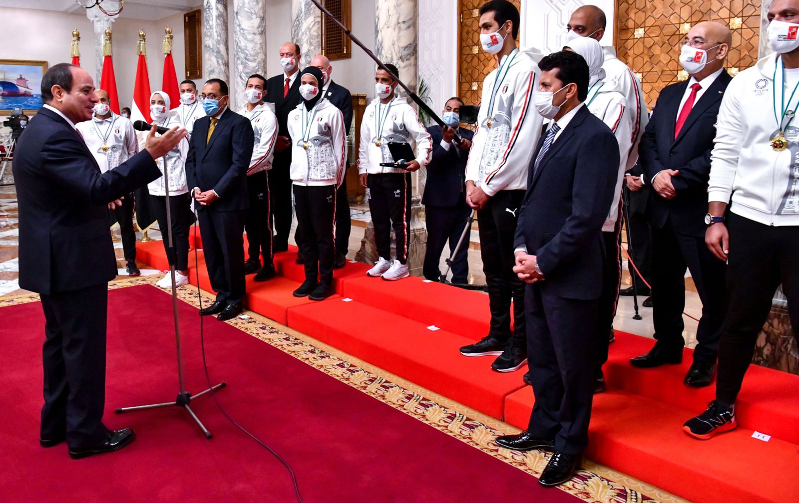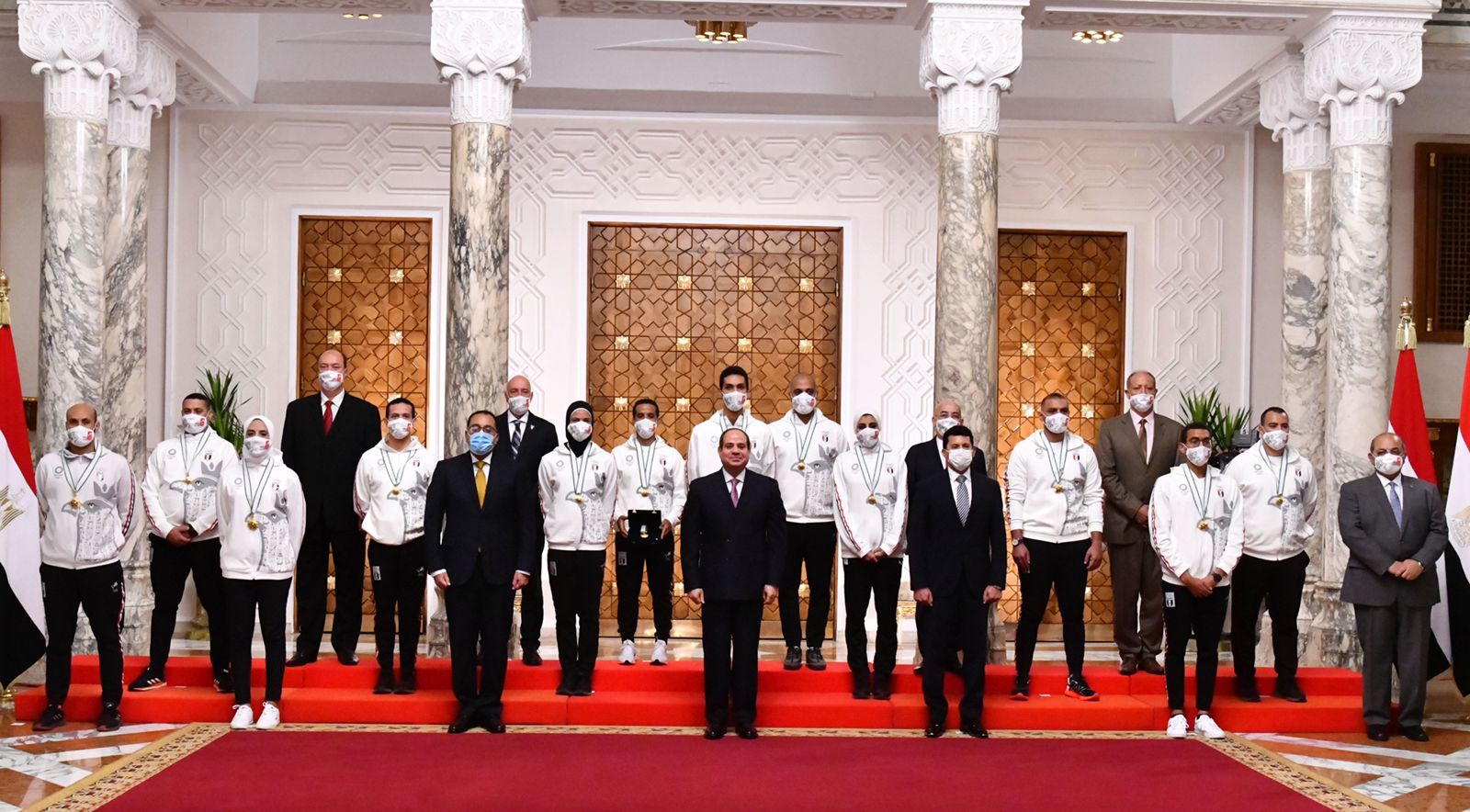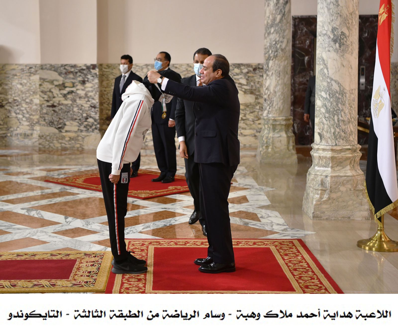 استقبل الرئيس عبد الفتاح السيسي اليوم اللاعبين واللاعبات والأطقم التدريبية المتوجة بميداليات خلال دورة الألعاب الأولمبية الأخيرة في طوكيو 2020، حيث قام الرئيس بمنح وسام الرياضة من الطبقة الأولى للاعبة الكاراتيه فريال عبد العزيز ومدربها هاني قشطة، ووسام الرياضة من الطبقة الثانية للاعب الخماسي الحديث أحمد الجندي ومدربه عبد الرحمن محمد، ووسام الرياضة من الطبقة الثالثة لكلٍ من لاعبة الكاراتيه جيانا فاروق ومدربها محمد عبد الرجال، ولاعب المصارعة محمد إبراهيم ومدربه محمد أحمد، ولاعبَي التايكوندو هداية ملاك وسيف عيسى ومدربَيهما أسامة سيد ومحمد مجدي والمدير الفني أوسكار سالازار.