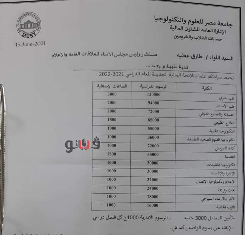 مصروفات جامعة مصر للعلوم والتكنولوجيا