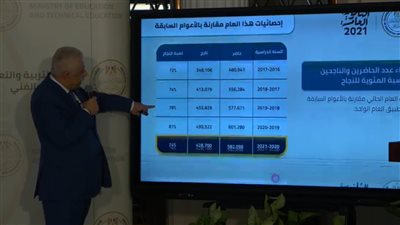 واستعرض الدكتور طارق شوقي مقارنة لنسب النجاح العامة لهذا العام لأول دفعة استخدمت التابلت عام 2016/ 2017 والتي بلغت 72%، بينما عام 2017/2018 بلغت 74%، وفي عام 2018/2019 بلغت 78%، وفي عام 2019/2020 بلغت 81%، وهذا العام 2020/2021 بلغت نسبة النجاح 74%.