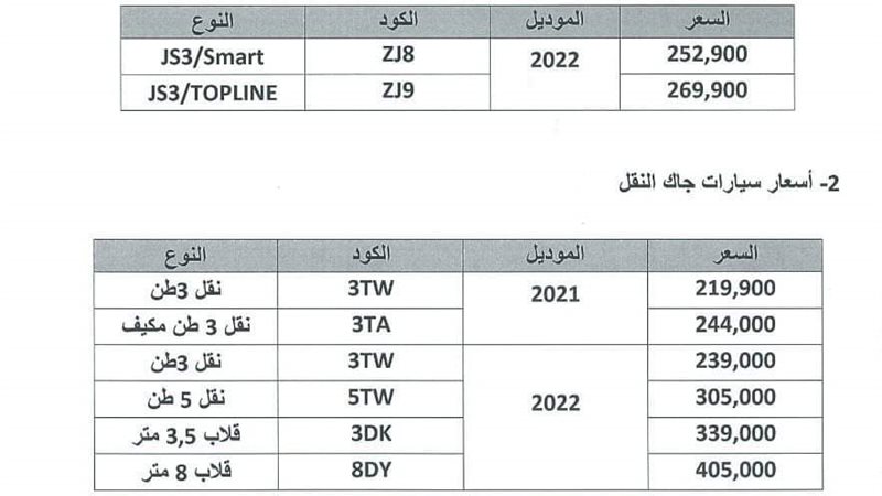 وفي ذات السياق المتصل أعلنت مجموعة القصراوي وكيل جاك بمصر طرح موديلات 2022 من سيارتها JS3 مع رفع سعر السيارة.