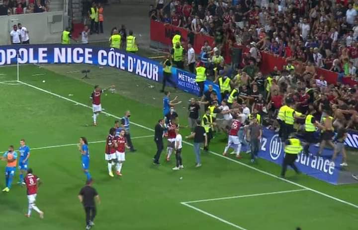 توقفت مباراة فريق نيس ضد ضيفه أولمبيك مارسيليا، مساء اليوم الأحد، في الجولة الثالثة من الدوري الفرنسي بسبب أحداث شغب من قبل الجماهير التي نزلت إلى أرض الملعب.