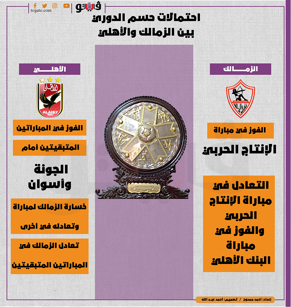 احتمالات حسم الدوري بين الزمالك والأهلي | إنفوجراف الإثنين 23/أغسطس/2021 - 02:26 م 8/23/2021 2:26:48 PM أحمد ممدوح شارك طباعة 18 حجم الخط شارك طباعة