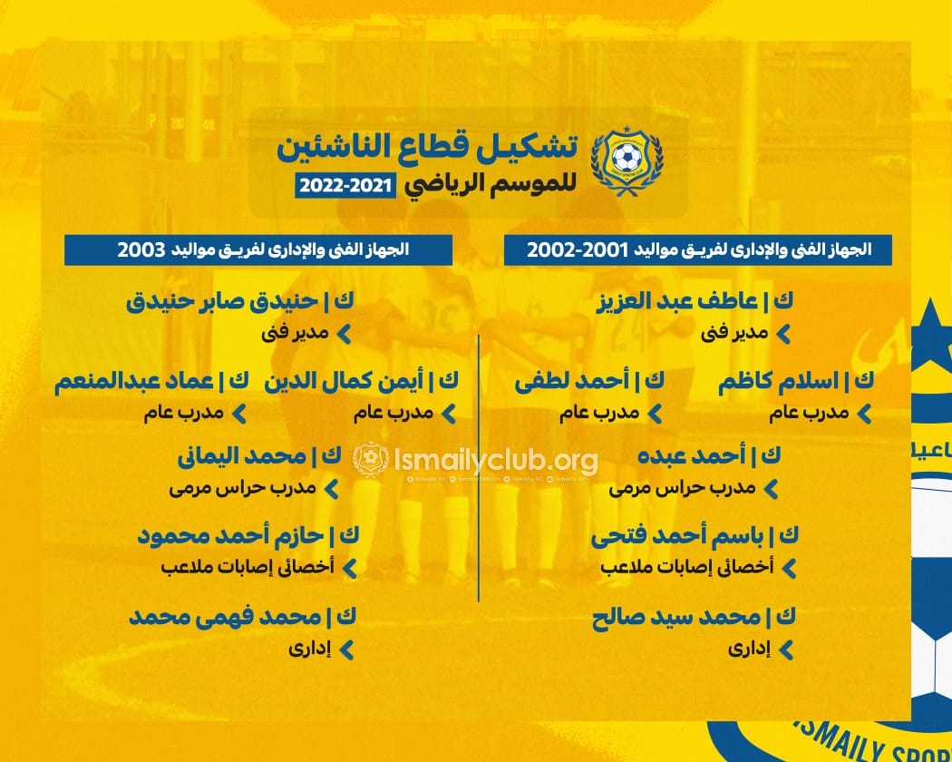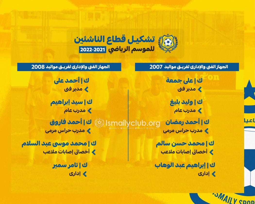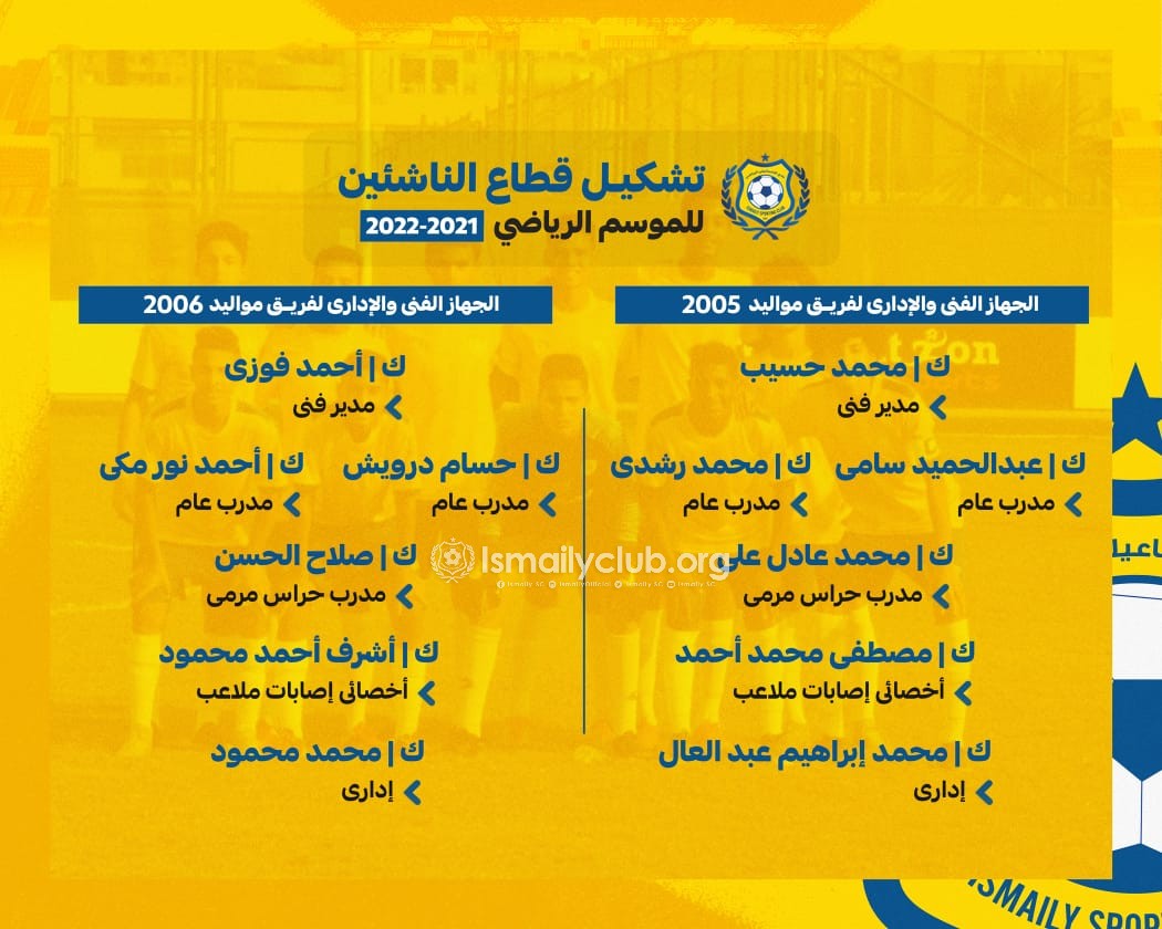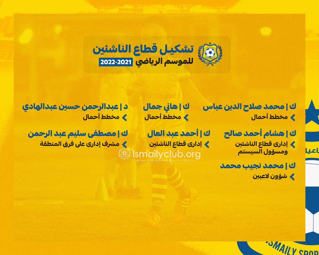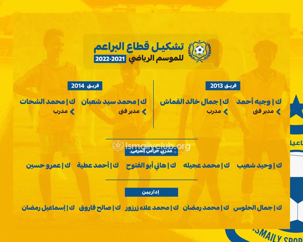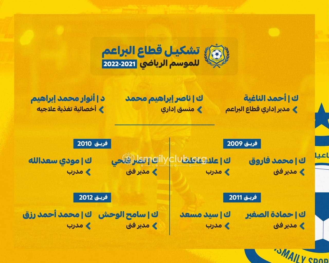 وكان مجلس إدارة الإسماعيلى برئاسة المهندس إبراهيم عثمان، اعتمد تشكيل قطاع الناشئين والبراعم والذى جاء علي النحو الآتي…