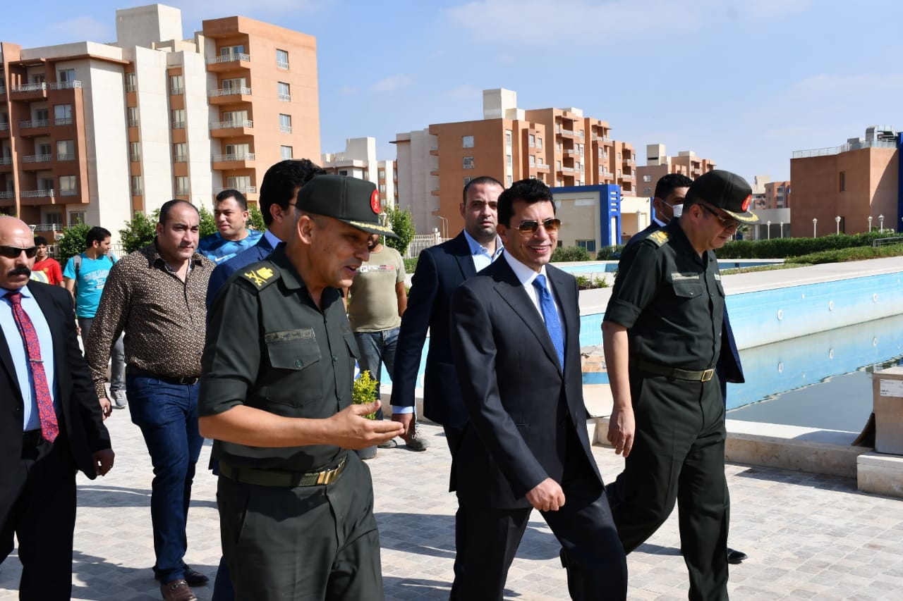 قام الدكتور أشرف صبحي وزير الشباب والرياضة، يرافقه اللواء دكتور أحمد فهمي فرج مدير إدارة المشروعات الكبرى بالقوات المسلحة، بجولة تفقدية في ناديي مشروع غرب الشروق.