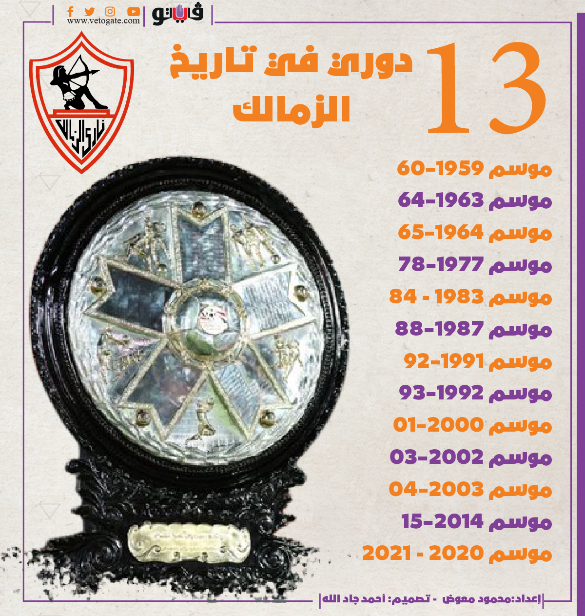 ١٣ دوري في تاريخ الزمالك | إنفوجراف الأربعاء 25/أغسطس/2021 - 12:55 ص 8/25/2021 12:55:07 AM الزمالك محمود معوض شارك طباعة 18 حجم الخط شارك طباعة الزمالك الدوري الممتاز ترتيب الزمالك في الدوري الممتاز مباراة الزمالك المقبلة نادي الزمالك