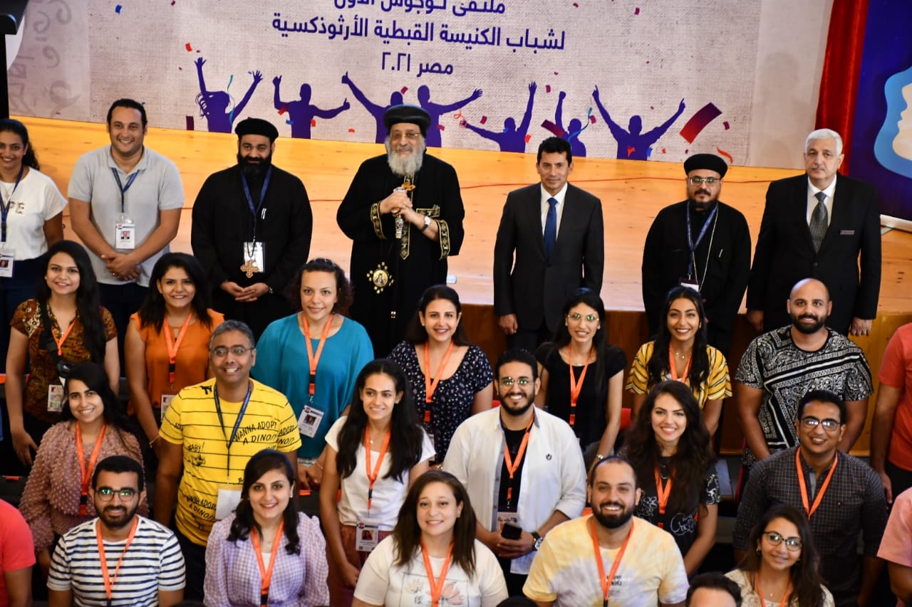 وزير الرياضة والبابا تواضروس يشهدان لقاء خاصا مع شباب ملتقى لوجوس الأول