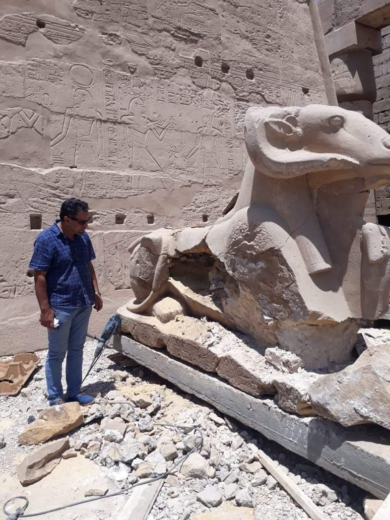 الآثار تواصل ترميم أعمدة معبد الكرنك استعدادا لافتتاح طريق الكباش