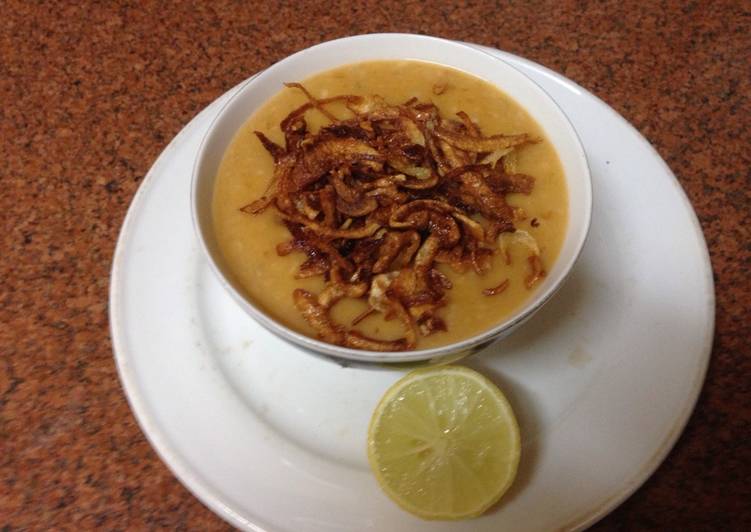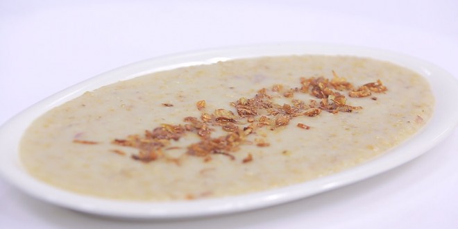 يقدم مُزينًا بالبصل المحمر وبالهنا والشفا