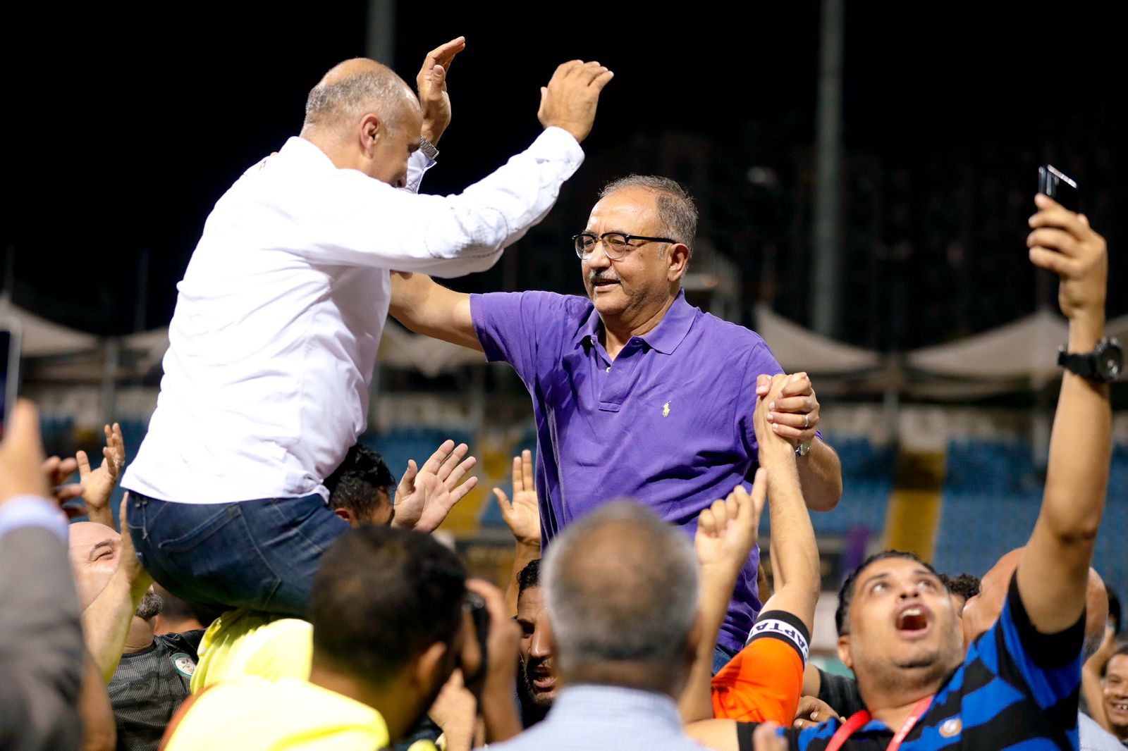 احتفل اللواء أشرف نصار رئيس مجلس إدارة نادي البنك الأهلي مع لاعبيه بالملعب معربا عن سعادته البالغة ببقاء فريق البنك الاهلي بالدوري الممتاز بعد تعادله مع الاتحاد السكندري اليوم الثلاثاء.