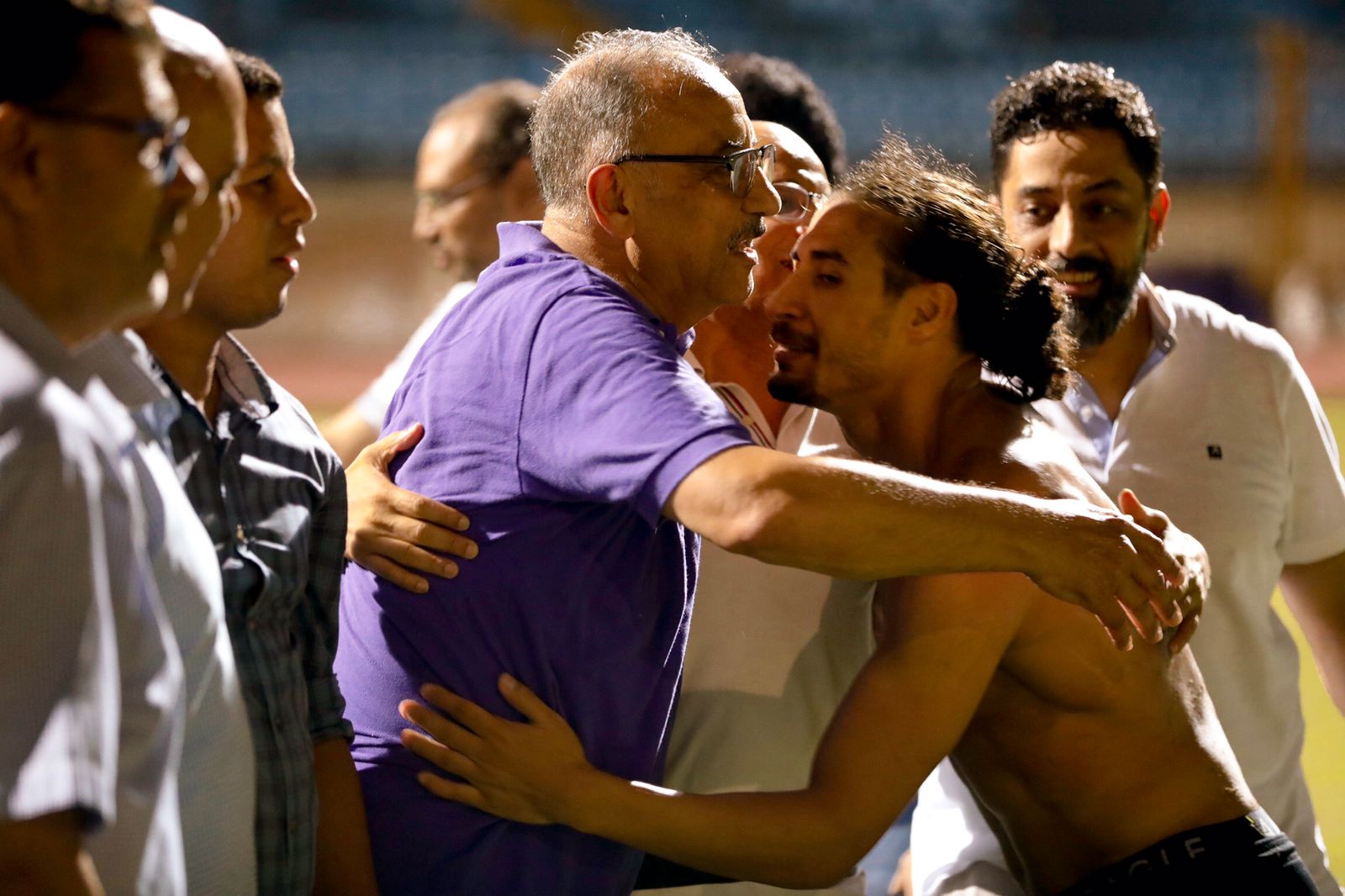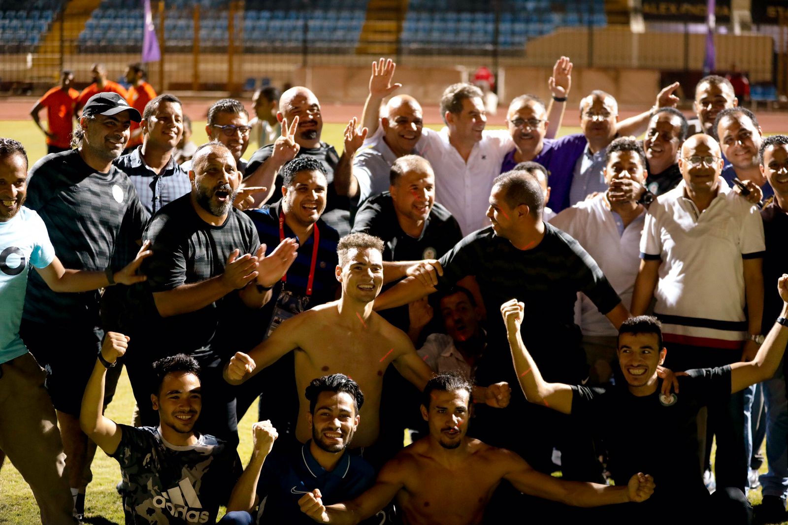 بعد البقاء بالدوري.. رئيس نادي البنك الأهلي يحتفل مع اللاعبين بالملعب|صور