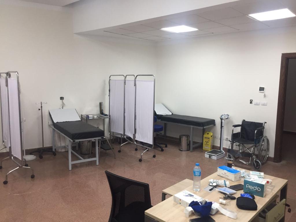 وفي إطار هذه الخدمات، وفرت الشركة بتوفير وتجهيز عيادة طبية للإسعافات الأولية داخل المنطقة تشتمل على جميع الاستعدادات مثل قياس ضغط الدم والسكر ومعالجة الجروح السطحية وضربات الشمس، وذلك بالاستعانة بطاقم طبي مدرب علي التعامل مع كافة الحالات وباستخدام الأجهزة الطبية اللازمة لخدمة محتاجي الخدمة من زائري المنطقة، كما قامت الشركة بالتعاقد مع إحدى الشركات المتخصصة لتوريد عربة كهربائية مجهزة لنقل المرضى لتتواجد داخل منطقة الأهرامات لتسهيل وصول محتاجي الخدمة من الزائرين إلى العيادة الطبية.