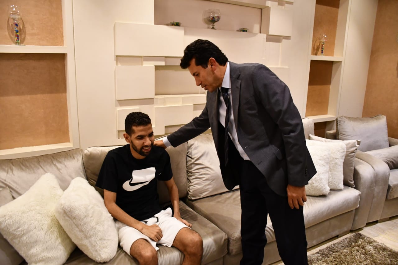 وزير الشباب والرياضة يزور مؤمن زكريا في منزله | فيديو