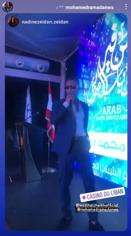 أعلن الفنان محمد رمضان، عن حصوله على لقب "سفير الشباب العربي"، وتم تكريمه في حفل كبير ببيروت، معربًا عن سعادته باللقب الجديد.