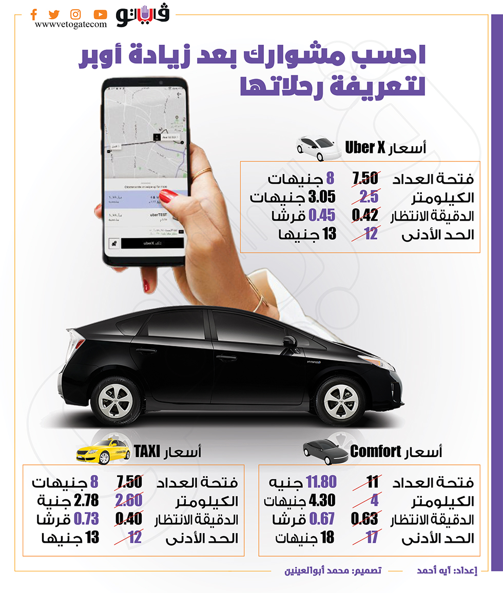 احسب مشوارك بعد زيادة أوبر لتعريفة رحلاتها|انفوجراف