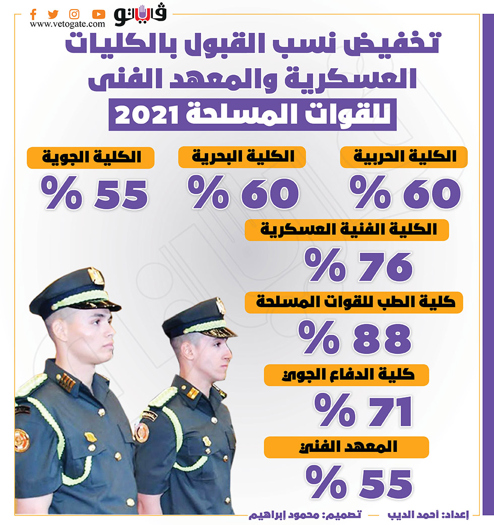 وكانت نسب القبول بالكليات العسكرية كالآتي: