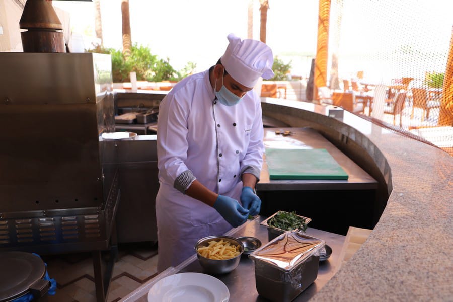 وقام الوزير، وبرافين، بتفقد أقسام التدريب الأربعة المطبخ، والعصائر، والمشروبات،وخدمة الغرف، والاستقبال التي قام الشباب والفتيات بالتدريب بها، واستمع الوزير للشباب وتحدث معهم، وأبدى إعجابه بالتجهيزات داخل أقسام التدريب، فضلا عن المواد الخام من المتطلبات اللازمة للتدريب، مشددا على ضرورة أن تكون الأطعمة والمشروبات متوافقة مع معايير سلامة الغذاء وصحية وآمنة وبجودة عالية، وتوافر معايير السلامة والصحة المهنية حرصا على سلامة العنصر البشرى فى أثناء التدريب.