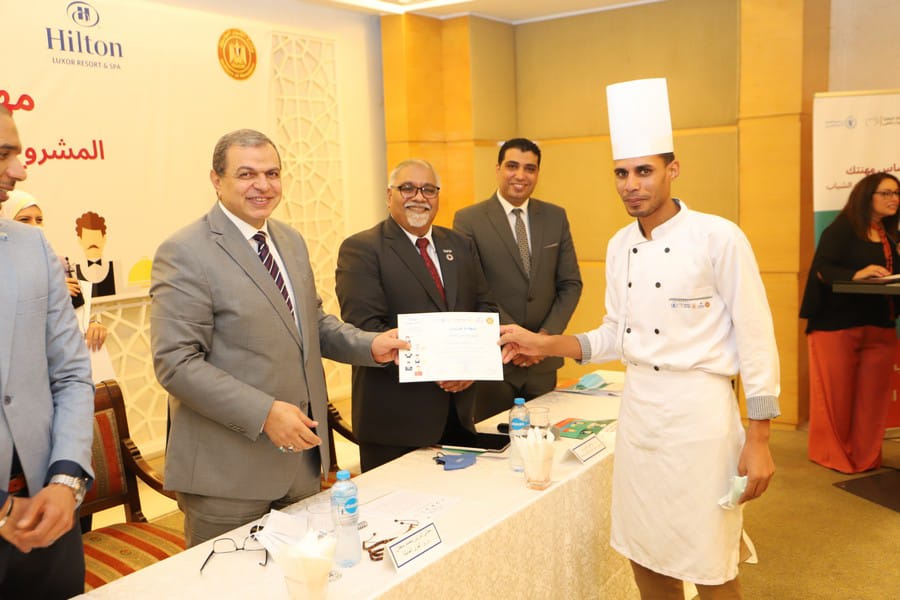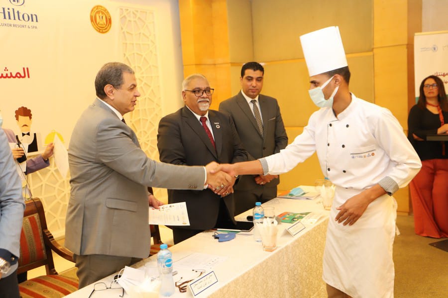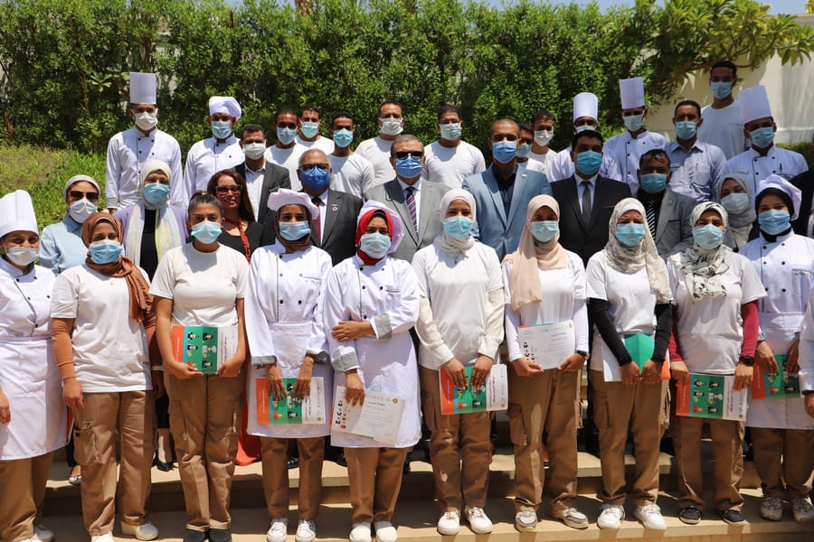 وفي هذا الإطار شهد الوزير، اليوم السبت، ختام فعاليات أول تدريب مهنى من نوعه فى مجال الفندقة الشاملة مجانا للشباب والفتيات، والذي استمر لمدة 6 أسابيع" أربعة منها بمركز تدريب الكوثر التابع لمديرية القوى العاملة بسوهاج وأسبوعين عمليا بفندق الهيلتون بالأقصر"، وذلك على أعمال الطهى والمطبخ، والمعجنات والمخبوزات، والتحضير والمشروبات والاستقبال وخدمة الغرف والمغسلة والكي.