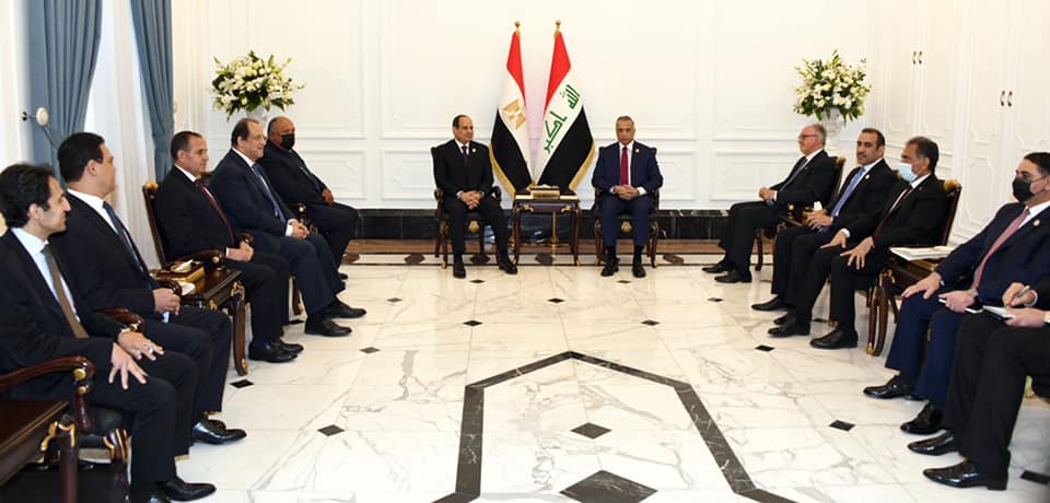 الكاظمي: نتطلع للاستفادة من تجربة النجاح المصرية الملهمة على صعيد بناء مؤسسات الدولة وتحقيق التنمية المستدامة والمشروعات القومية
