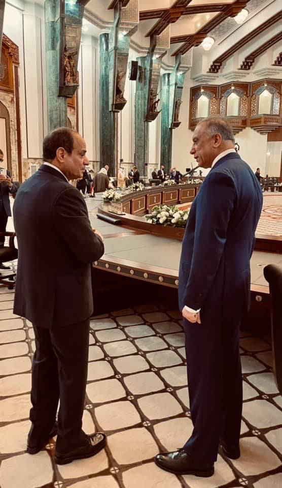 كما التقى الرئيس السيسي اليوم، في العاصمة العراقية بغداد، مع مصطفى الكاظمي، رئيس وزراء العراق.