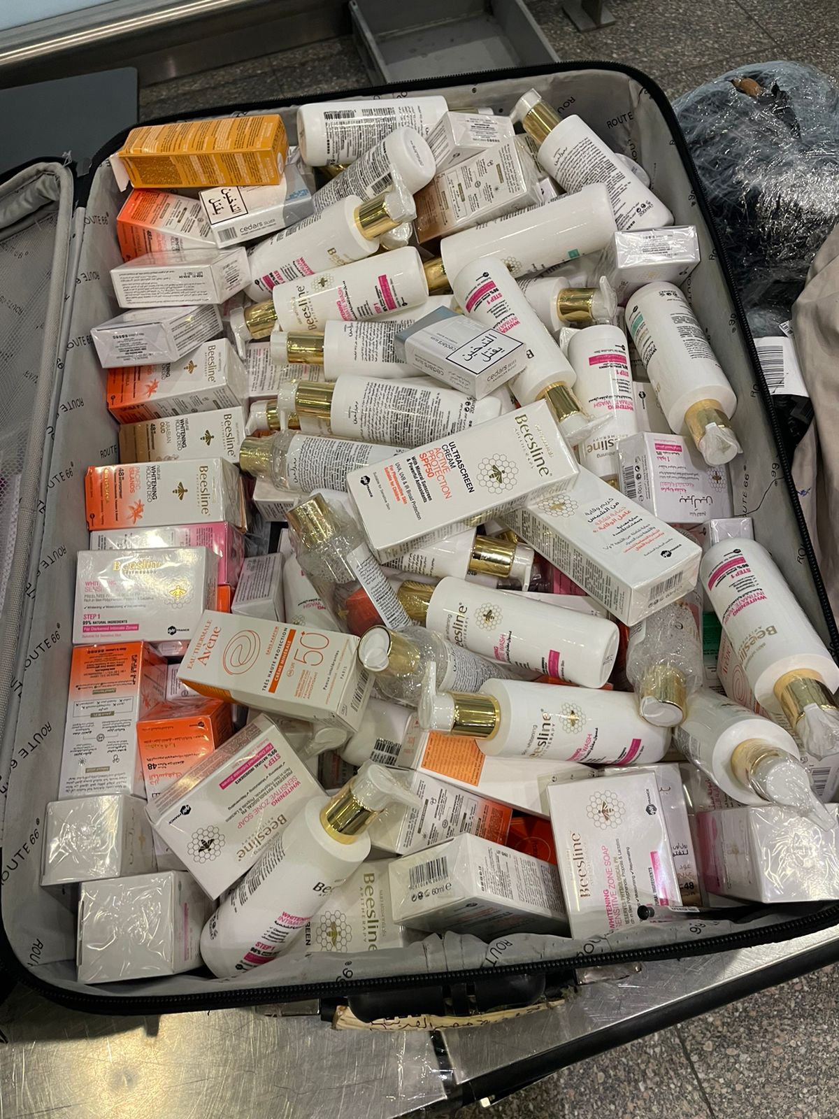 تمكنت سلطات جمارك مطار القاهرة الدولي، من إحباط تهريب كمية كبيرة من مستحضرات التجميل كانت مع راكب مصري لدي وصوله قادما من لبنان، وتم تحرير محضر بالواقعة.