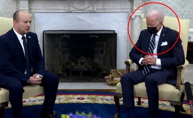 وفي موقف آخر أصر بينت على مصافحته ليرفض بايدن إحراجه رغم وباء كورونا وجرى الموقف على استحياء حيث بدت حالة من السرحان على وجه الرئيس الأمريكي الذي لم ينظر إلى الكاميرات ولا وجه بينت بينما كان وجه بينت يعبر عن الاستياء وعدم الرضا.