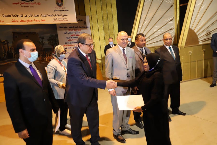 كما شهد وزير القوى العاملة، ختام فعاليات ملتقى السلامة والصحة المهنية الأول بالمحافظة في مجال صناعة السكر بأرمنت للوقاية من جائحة كورونا ودور السلامة وتأمين بيئة العمل في التعامل الأمن مع الأدوات والمعدات.