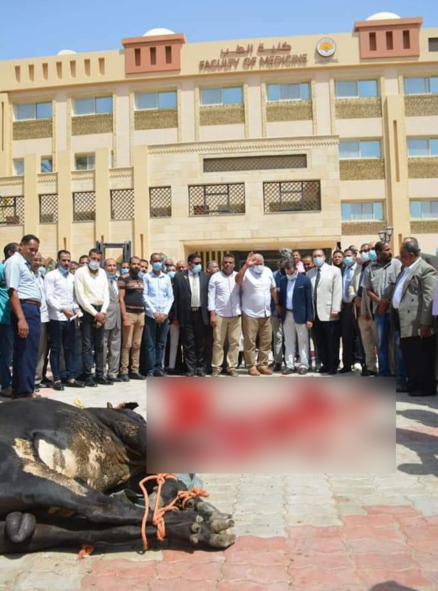 جامعة الوادي الجديد تذبح عجلا احتفالا ببدء الدراسة بكلية الطب البشري |صور