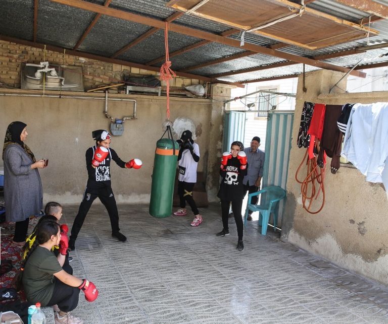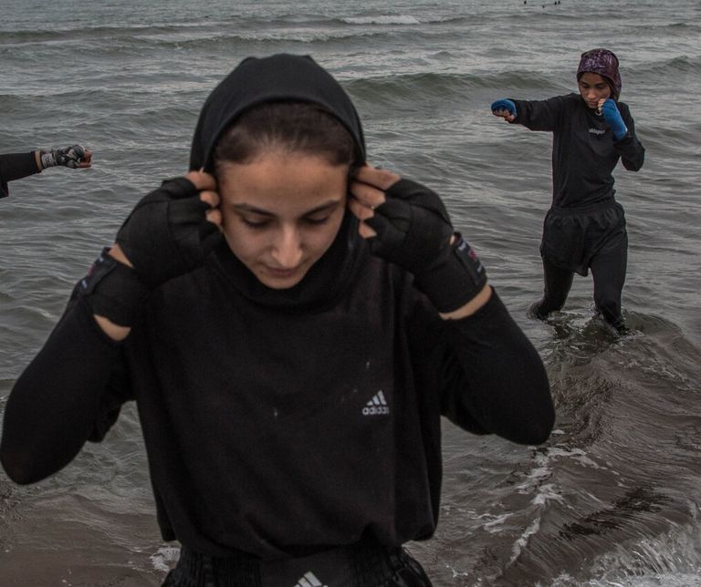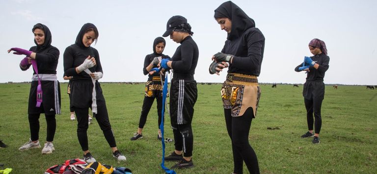 وأضافت إن "النساء يمارسن حاليًا بشكل فردي في قبو منازلهن أو على شكل مجموعات مع اصدقائهن في الجبال والسهول والصحاري وعلى الشواطئ رياضة الملاكمة لتحقيق هذا الحلم بعيدًا عن أعين السلطات".