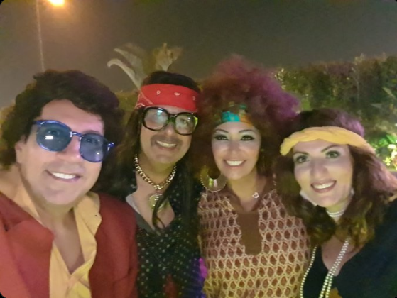 وعلق هاني رمزي على الصورة: “أنا ومراتى وداليا البحيرى وجوزها حسن حبينا نعيش جو السبعينات طلع شكلنا كده ياريت بلاش تريقه علشان إحنا إتريقنا على بعض بكفايه”.