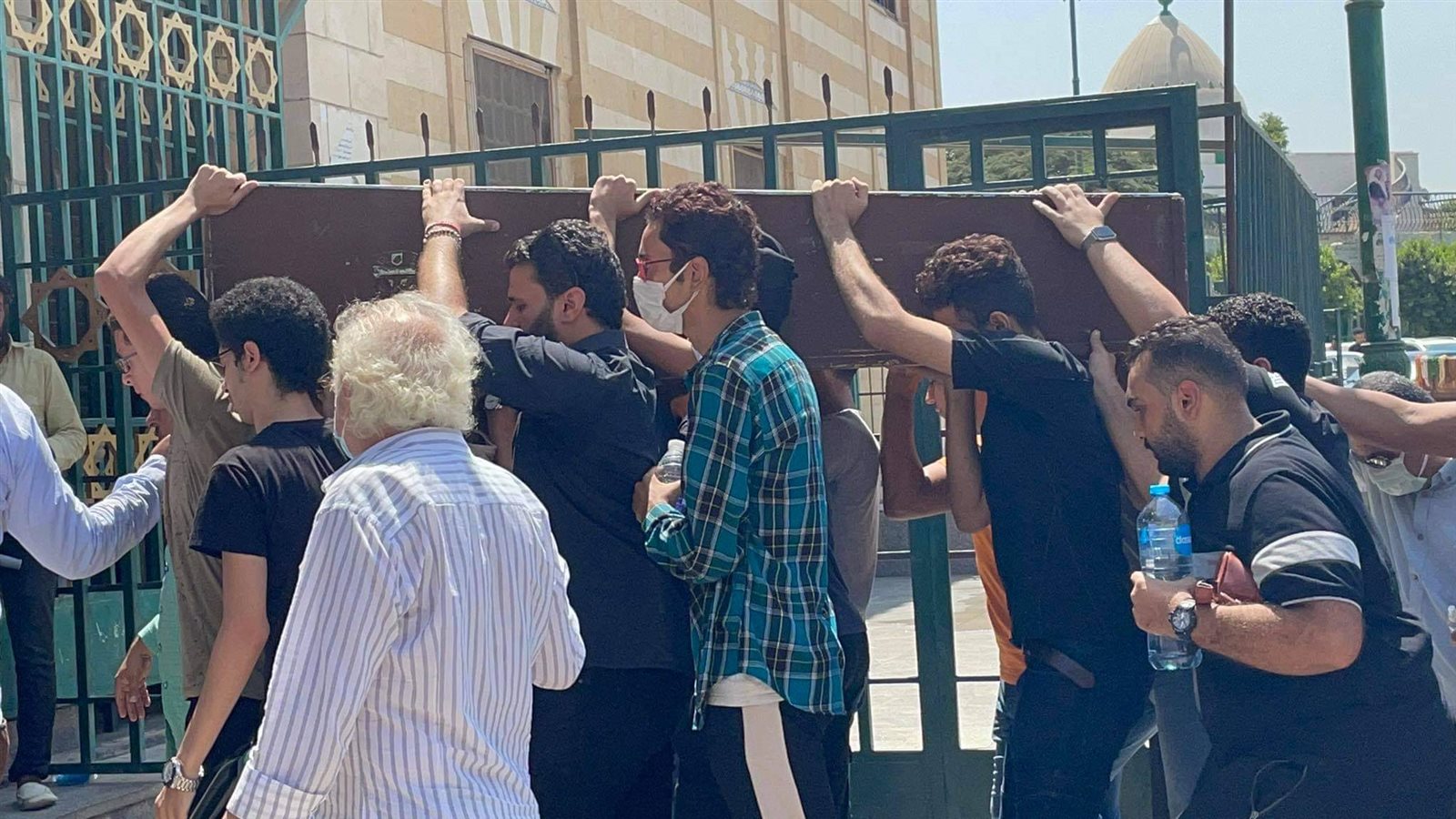 وصول جثمان ماهر سليم لمسجد السيدة نفيسة.. ومنير مكرم أول الحضور | فيديو