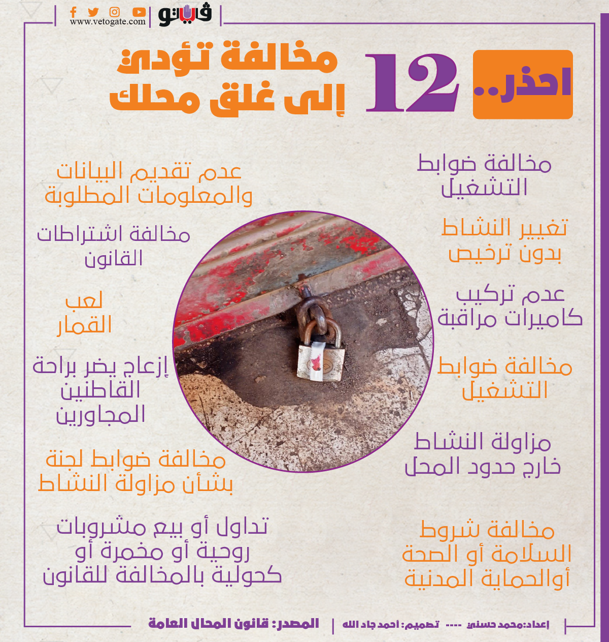 احذر..12 مخالفة تؤدي إلى غلق محلك| فيديو جراف الخميس 02/سبتمبر/2021 - 01:17 م 9/2/2021 1:17:58 PM إغلاق المحال محمد حسني شارك طباعة 18 حجم الخط شارك طباعة الصحة الحماية المدنية كاميرات مراقبة قانون المحال العامة الصحة المهنية تركيب كاميرات المحال العامة محمد حسني الاداب العامة