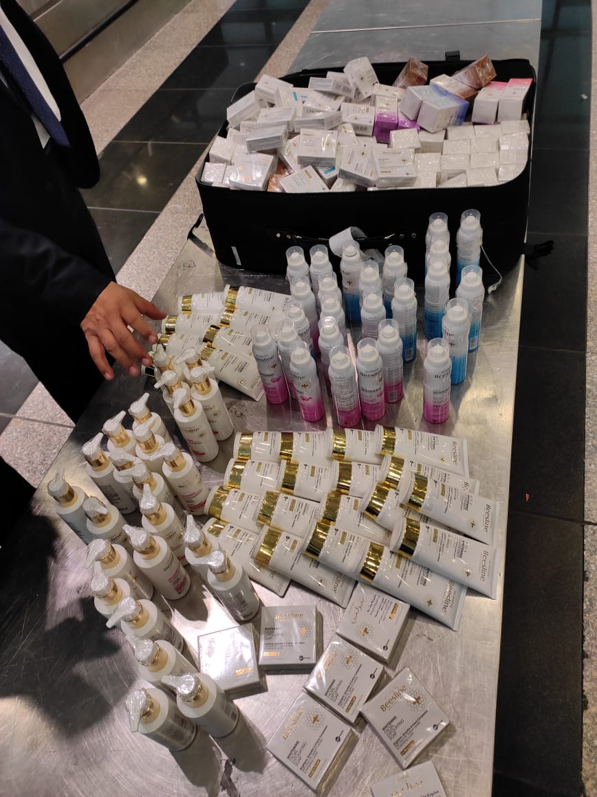أحبطت سلطات جمارك مطار القاهرة الدولي محاولة راكب مصري تهريب كمية كبيرة من مستحضرات التجميل، بحوزة راكب قادم من بيروت.