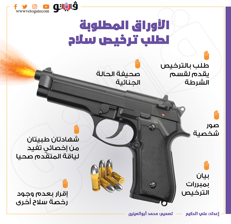 الأوراق المطلوبة لطلب ترخيص سلاح l إنفوجراف السبت 04/سبتمبر/2021 - 12:33 م 9/4/2021 12:33:04 PM سلاح ناري على الحكيم شارك طباعة 18 حجم الخط شارك طباعة الحوادث وزارة الداخلية الاوراق المطلوبة لترخيص السلاح اخبار الحوادث الحوادث اليوم