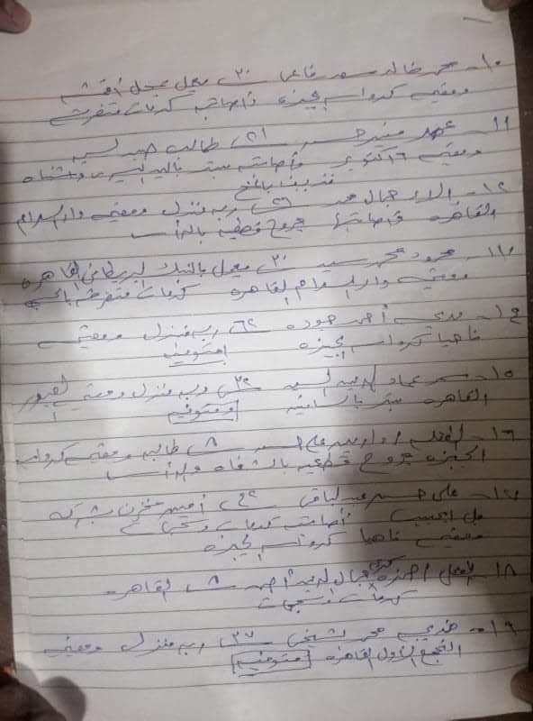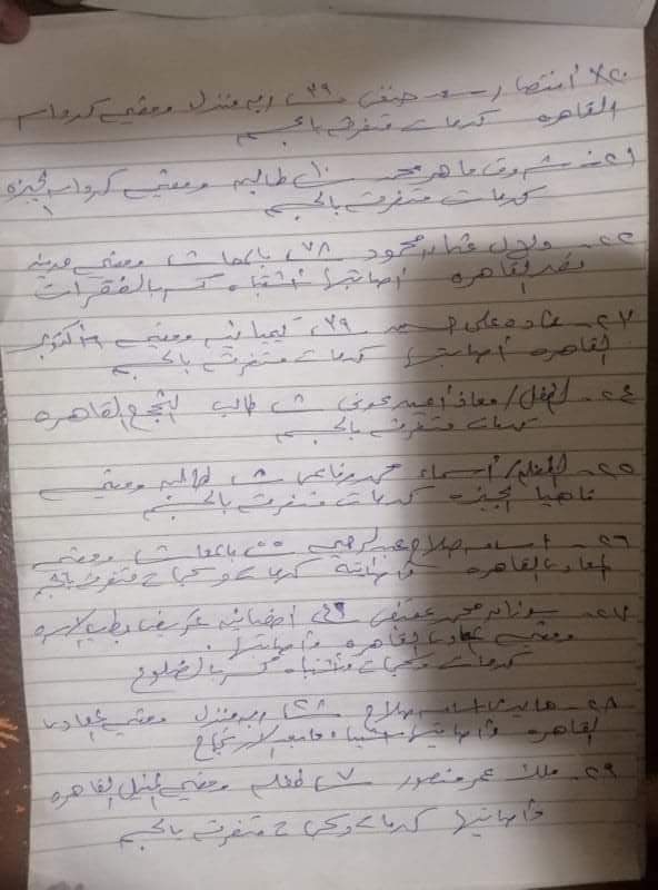 شروق ماهر محمد _ دلال عثمان محمود _ حماده علي حسين _ معاذ امين _ أسماء محمد رفاعي _ أسامة صلاح عبد الرحيم _ سوزان محمد عفيفي _ هايدى اسامه صلاح _ ملك عمر منصور _ محمد خالد سعد _ عمر منير حسن ألاء جمال محمد محمود محمد سيد على حسن عبد الباقي _ حمزه كريم جمال _ عمر عصام الدين عبدالرحمن عبدالله جابر ، محمد عبد الله جابر _ طارق عز الرجال حسان _ حنان علي حسن _ حسين إسلام شحاته، عبد الهادى حمزة إبراهيم _ سمر محمد محمود _ علي احمد علي حسين _ سيف الدين عمر منصور _ الشيماء محمد إسلام عاطف حسين عبدالله فهيم علي خالد محمد خالد _ إيمان خالد عيسى رفاعي.