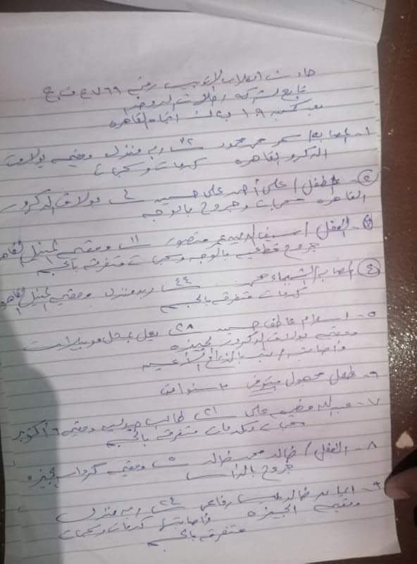 وتبين إن أسماء بعض المتوفين الذين تم التوصل إلى هويتهم هم مديحة أحمد جودة، سمر عماد الدين السيد، خديجة محمد، وطفل مجهول الهوية متوفي عمره 3 سنوات، وطفل آخر مجهول الهوية متوفي يبلغ من العمر حوالي 10 سنوات.