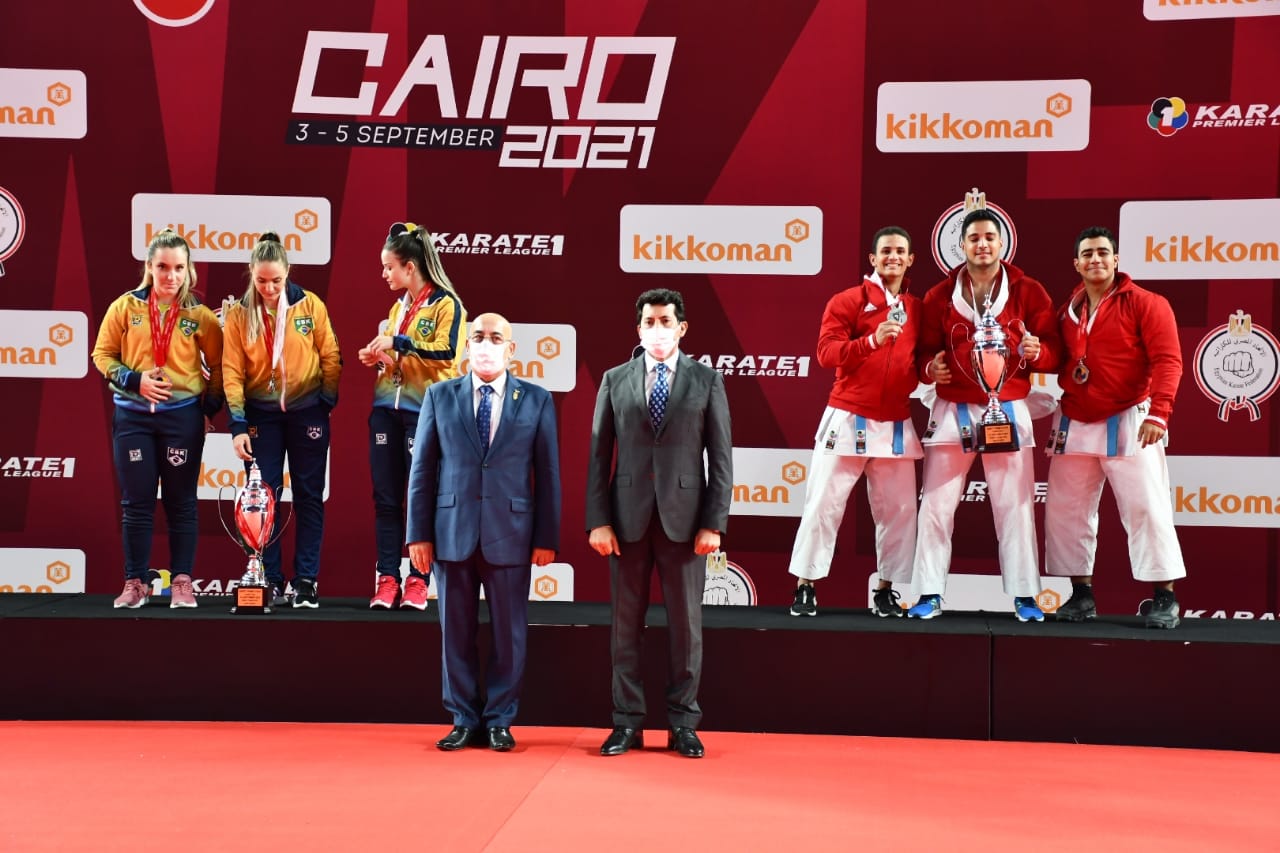 وشارك الوزير برفقة الضيوف في مراسم تتويج الفائزين في منافسات الدوري العالمي للكاراتيه حيث حصد منتخب مصر للكاراتيه 5 ميداليات ذهبية و4 ميداليات فضية و6 ميداليات برونزية في منافسات الكاتا والكوميتيه ببطولة البريميرليج الدولية.