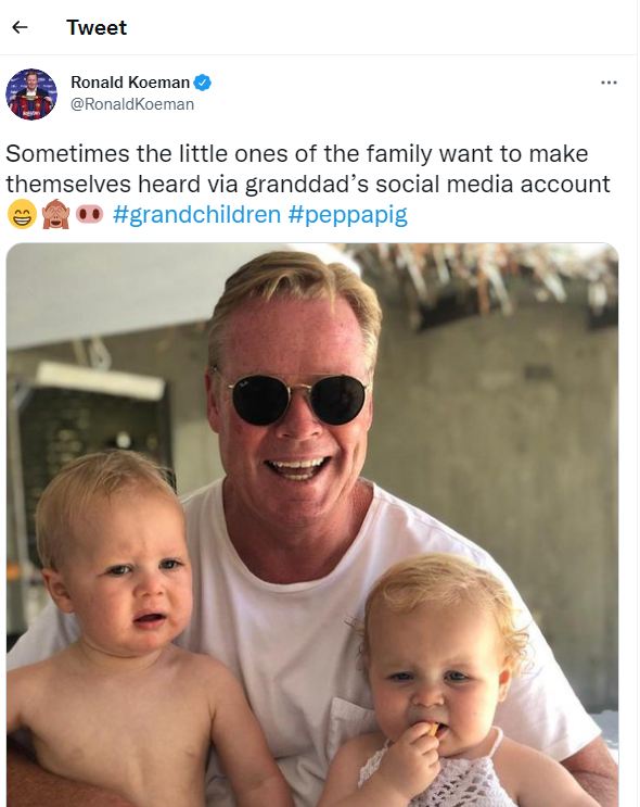 وعاد كومان لتوضيح الأمر بتغريدة أخرى، حيث نشر صورة تجمعه بأحفاده.