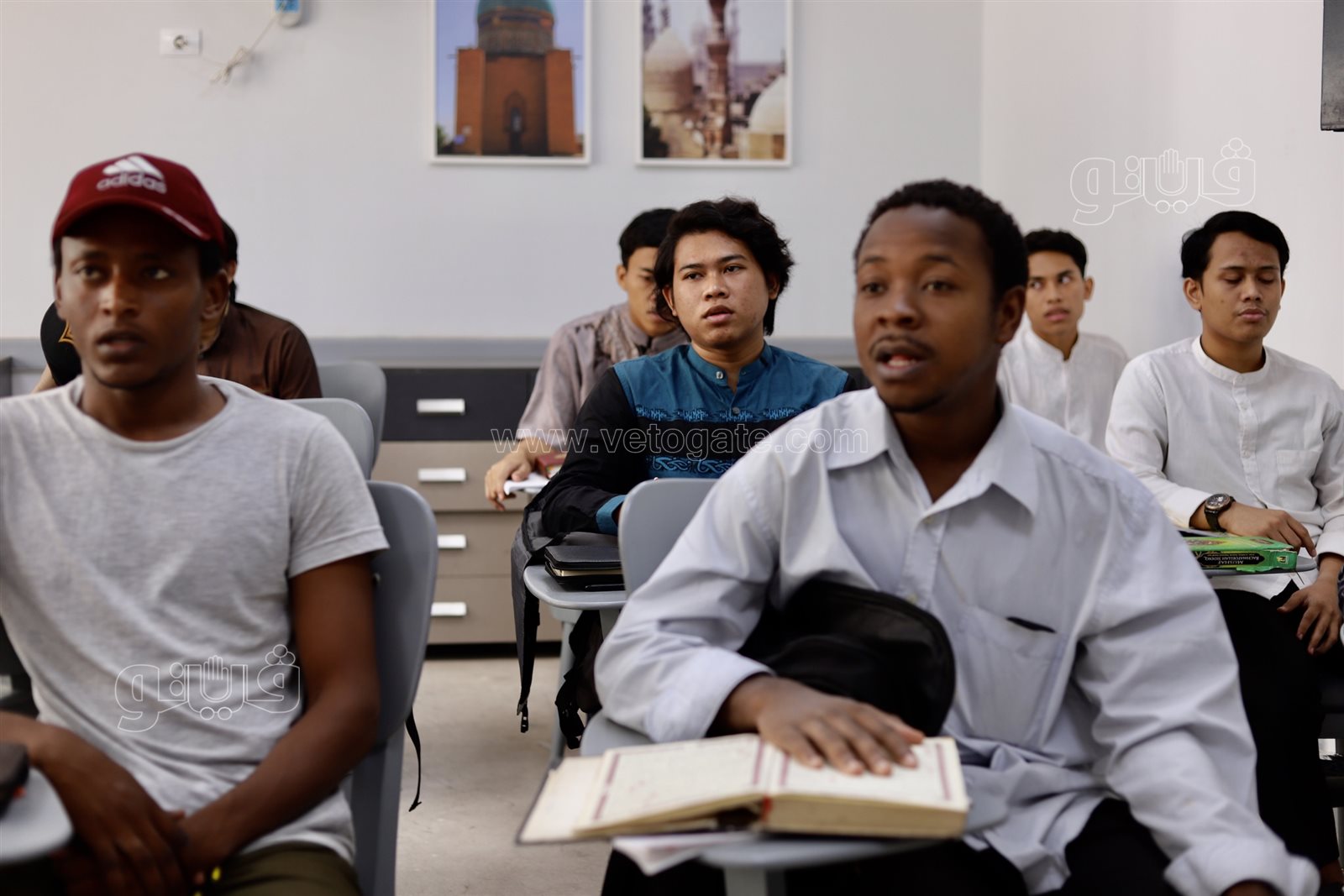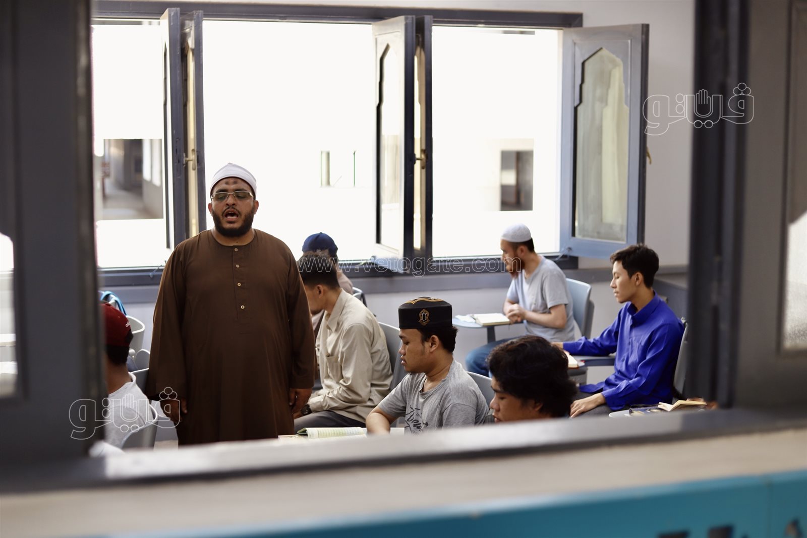 "حناجر ذهبية، وأصوات تعانق أمواج السحاب بتلاوة آيات الله" طلاب من أجناس متعددة يتعلمون القرآن على يد مجموعة من علماء الأزهر الشريف، هكذا بدوا الوضع مع وضع اولى خطوات “ عبد الرحمن” قدميه داخل أروقة مدرسة " الإمام الطيب"، والتي حرصت "فيتو" على قضاء يوم دراسى فيها للتعرف عن قرب عن طبيعة الدراسة فى المدرسة التى يأمل الأزهر الشريف أن تكون بمنزلة انطلاقة جديدة نحو تعليم علوم القرآن الكريم لجميع الطلاب الوافدين داخل مصر وخارجها.