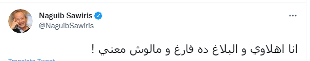 وكتب نجيب ساويرس تغريدة على تويتر قال فيها: "أنا أهلاوي والبلاغ ده فارغ ومالوش معني!".