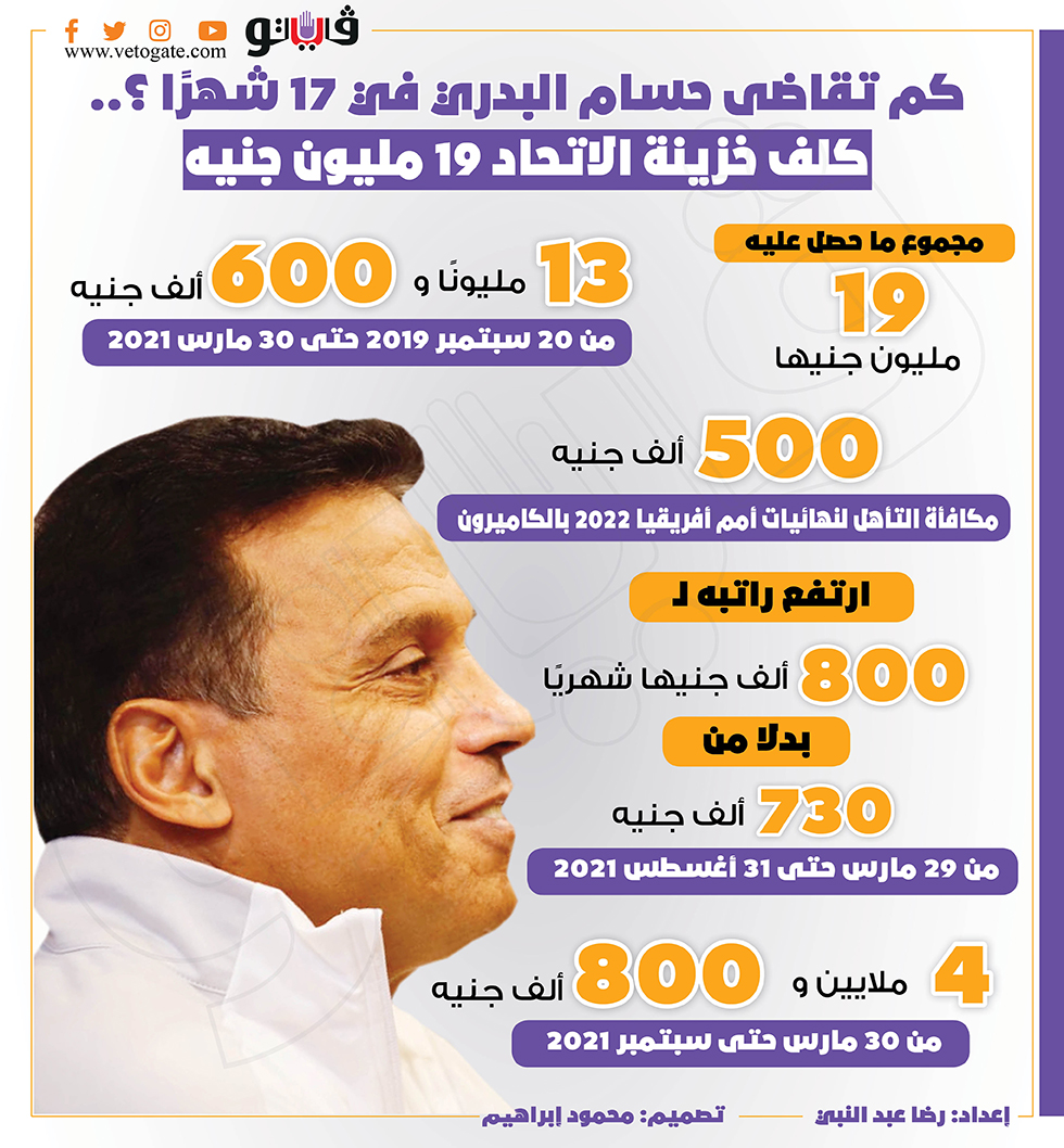 كم تقاضى حسام البدري في 17 شهرًا ؟.. كلف خزينة الاتحاد 19 مليون جنيه | انفو جراف الإثنين 06/سبتمبر/2021 - 07:08 م 9/6/2021 7:08:37 PM رضا عبدالنبى شارك طباعة 18 حجم الخط شارك طباعة