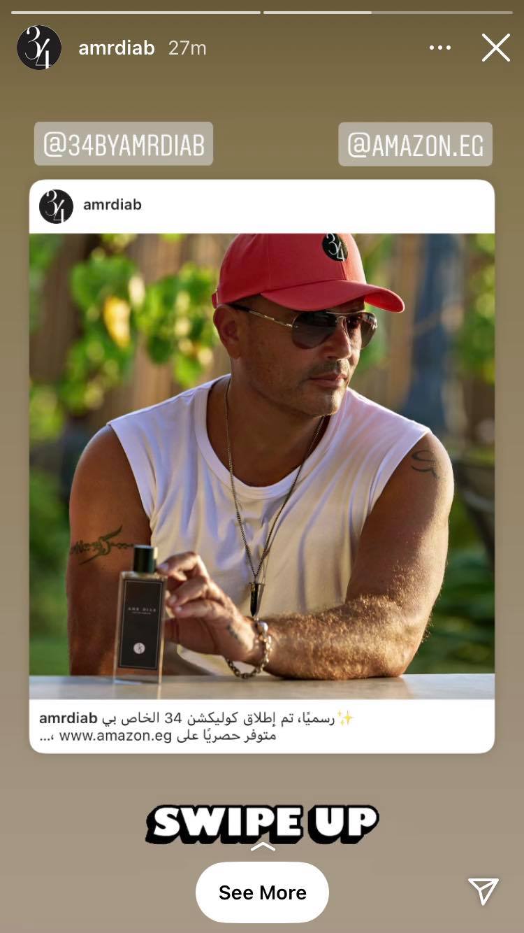 أعلن الفنان عمرو دياب عن إطلاق منتجات علامته التجارية 34، وأصبحت متاحة للبيع عبر "أمازون".