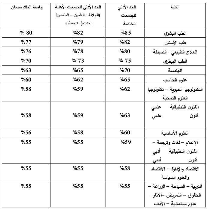 قررت اللجنة المشكلة من مجلس الجامعات الخاصة والأهلية في اجتماعها مساء اليوم الثلاثاء، برئاسة د. خالد عبد الغفار وزير التعليم العالي والبحث العلمي، خفض الحد الأدنى للتقدم لكليات الجامعات الخاصة والأهلية.\