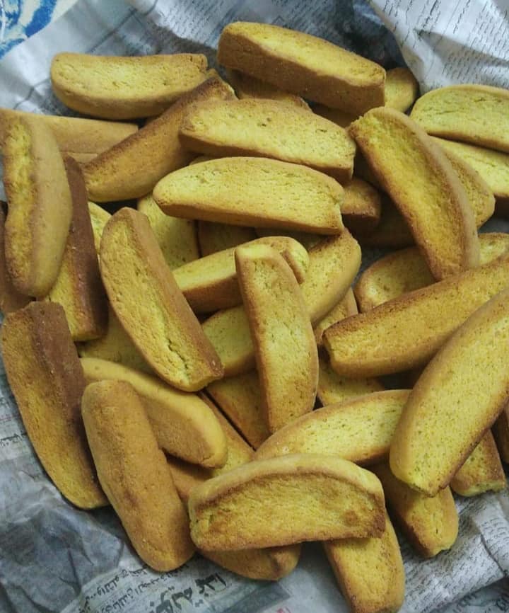 -بعد حدوث التخمر للعجين تُقطع على شكل صوابع أو أقراص ثم توضع في صاجات مدهونة بالسمن.