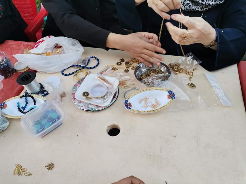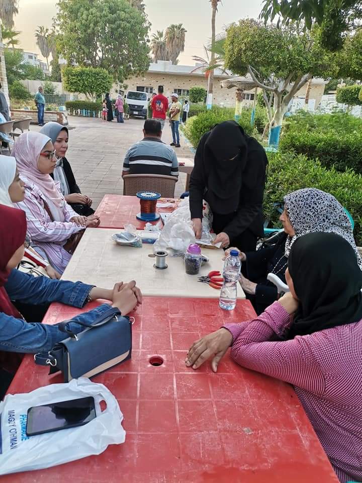 و تقام ضمن فعاليات اليوم الثاني أيضا ورشة " النحاس والحلي "، وتقدمها الفنانة نجاة عبد القادر، حيث قامت بشرح مفصل عن تعريف الأدوات المستخدمة في عمليات صناعة الحلى مثل ( القصافة - أداة المدور) ، وتم التعرف على أشكال الحلى وأنواعها، كما تم شرح كيفية تركيب الحلقات المصغرة بسلسلة وتركيب الحلقة من الطرف التانى وتوصيلها بدلاية وتعليم المتدربات على تركيب القفل المدهب بالسلسلة، ومشرف على هذه الورشة سماح علي.