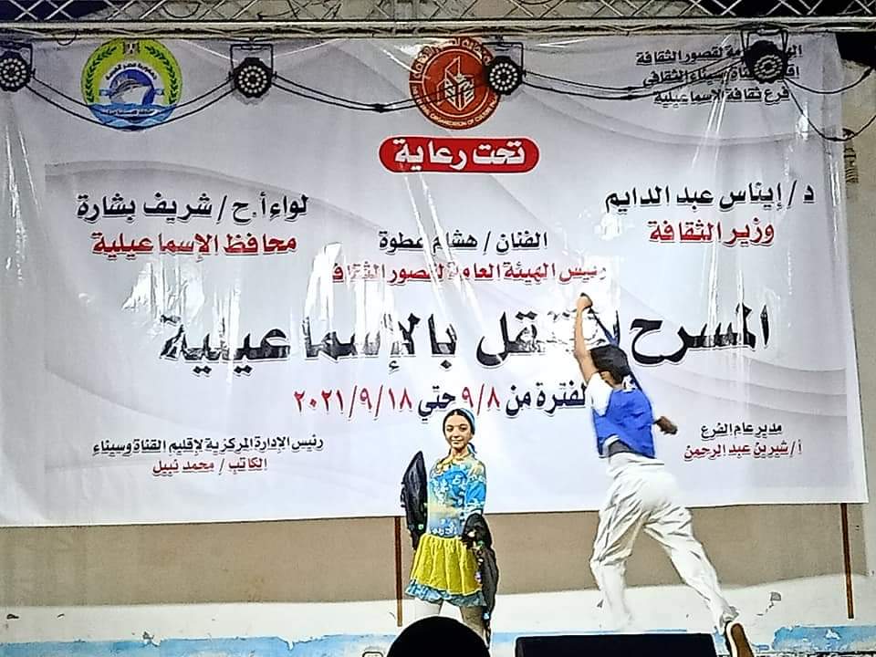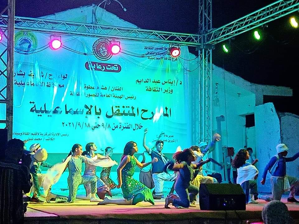 تستمر الهيئة العامة لقصور الثقافة برئاسة المخرج هشام عطوة، في تقديم فعاليات المسرح المتنقل التي يقام من خلال فرع ثقافة الإسماعيلية، برئاسة شيرين عبد الرحمن التابع لإقليم القناة وسيناء الثقافي، برئاسة الكاتب محمد نبيل، والتي تقام خلال الفترة من ٨ وحتى ١٨ من شهر سبتمبر الجارى بمدينة فايد بالإسماعيلية.