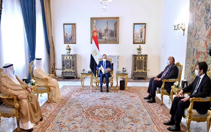 وقال السفير بسام راضي المتحدث الرسمي باسم رئاسة الجمهورية بأن وزير الخارجية الكويتي نقل إلى الرئيس رسالة من أخيه صاحب السمو الشيخ نواف الأحمد الجابر الصباح أمير دولة الكويت تضمنت الإعراب عن اعتزاز الحكومة والشعب الكويتي بما يجمعهما بمصر وشعبها من أواصر تاريخية وطيدة وعلاقات وثيقة في مختلف المجالات، والتقدير البالغ للدور الاستراتيجي والمحوري الذي تقوم به مصر تحت قيادة السيد الرئيس في حماية الأمن القومي العربي والدفاع عن قضايا الأمة العربية، وكذلك مساعي مصر الدؤوبة في سبيل ترسيخ الأمن والاستقرار والتنمية على الصعيدين الإقليمي والدولي.
