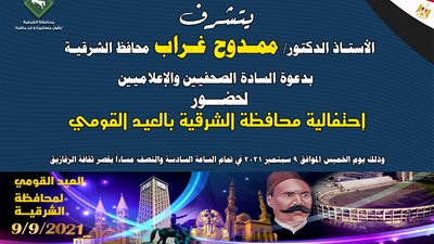 وكانت المحافظة قد أقامت احتفالا رسميا بالعيد القومي للمحافظة بالأمس الموافق 9 من سبتمبر وهو اليوم الذي يتوافق ووقفة الزعيم أحمد عرابي ابن الشرقية أمام الخيدوي مطالبا بمطالب الجيش عام 1881 ميلادية.
