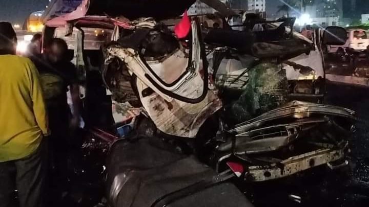 إصابة 5 أشخاص في حادث اصطدام سيارة نقل بميكروباص بطريق جسر السويس | صور